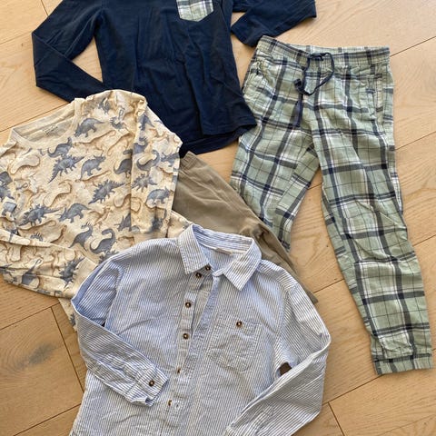 Ingen spesielle anmerkninger. Buksene er en del brukt. Ingen plagg har spesielle flekker/hull.