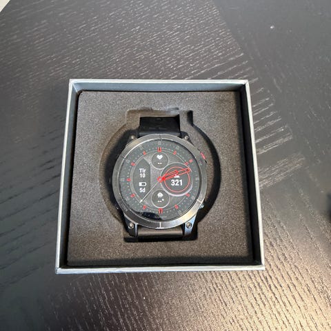 Garmin Fenix 7S smartklokke med svart reim. Inkluderer ladekabel og original eske. Klokken har en kompakt størrelse egnet for ulike aktiviteter og daglig bruk.