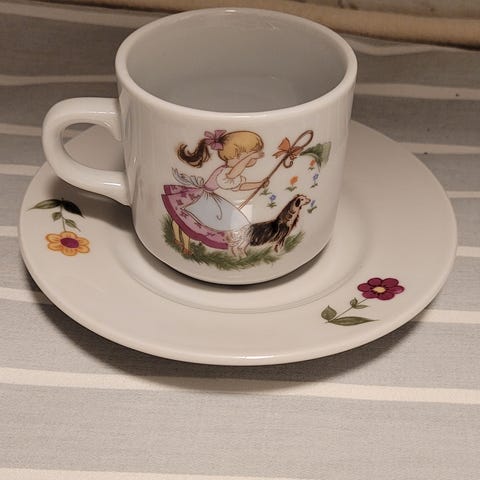 Nydelige kopper/krus merket Thomas, Liv, Gro og Sverre. Nydelige motiver av barn, med klare farger.