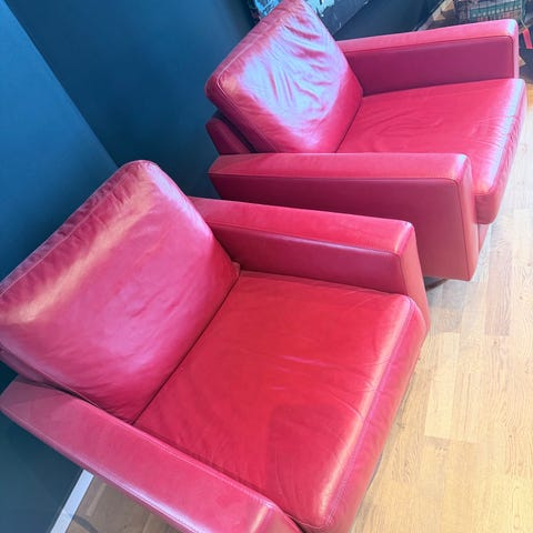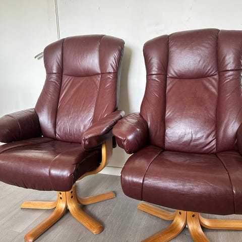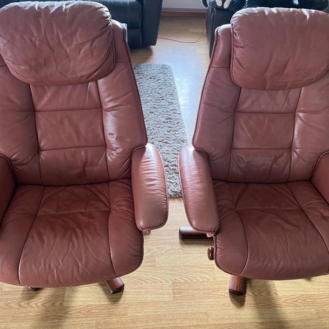 2 skinnstoler selges 250 pr stol. En lenestol og en "vanlig". Eller 400 for begge