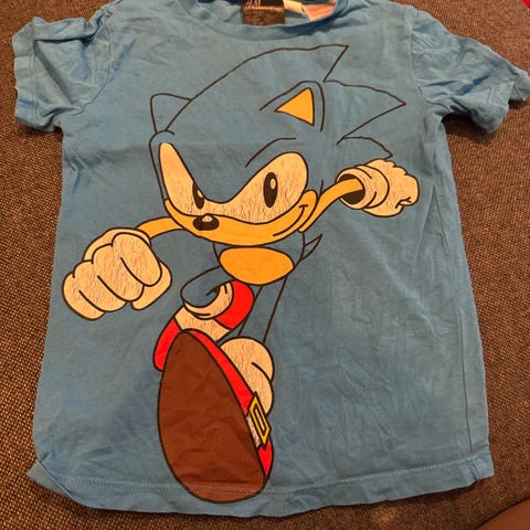 Selger en superkul Sonic the Hedgehog T-skjorte i myk bomull, størrelse 92.