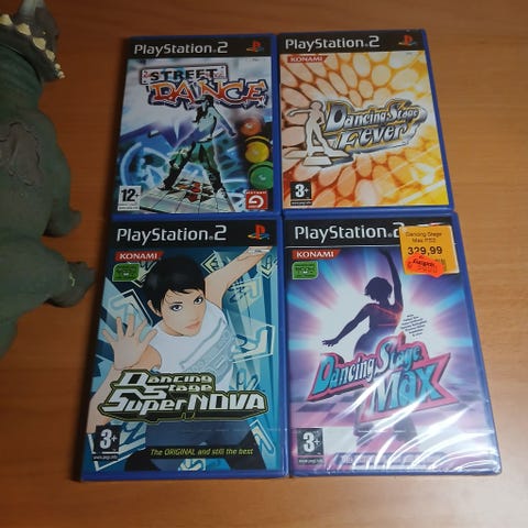 Konami Dancing Stage MegaMix PlayStation 2 spill. Inkluderer dansespill med flere spillmoduser som single player og multiplayer. Passer for aldersgruppen 3 år og oppover. Spilldisken og originalt omslag medfølger.