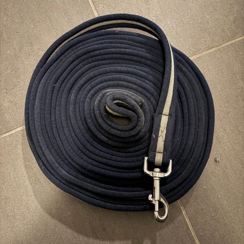 Pent brukt longeringstau fra Rodeo horse. 8 meter(svart) og 6,5 meter( svart og blått )
