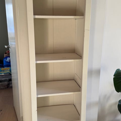 2 hvite hyller med hvite hylle knekter gies bort, de er fra montert så har bare disse bildene. De er brukte, meg har fungert fint som bokhyller på veggen.