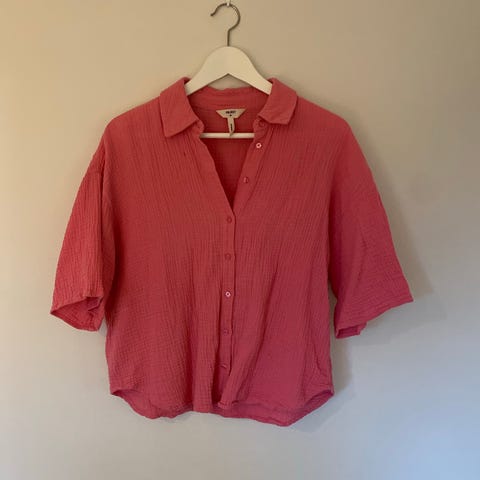 Buksene har strikk og snøring i livet, middels høy midje, smale ben, og har stretchy, mykt stoff. I god stand.