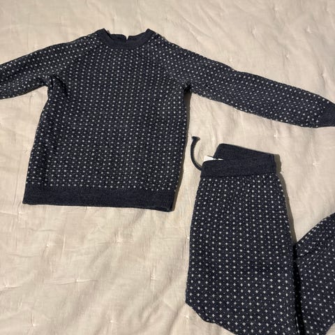Selger 2 sett med ullbody og longs str. 86/92. Klærne har flere hull, slitasje og misfarging. Se bilder.