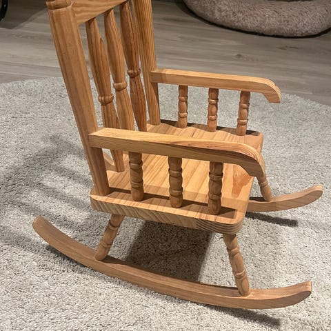 En hvit gyngestol til barn selges da den ble lite brukt her hjemme.