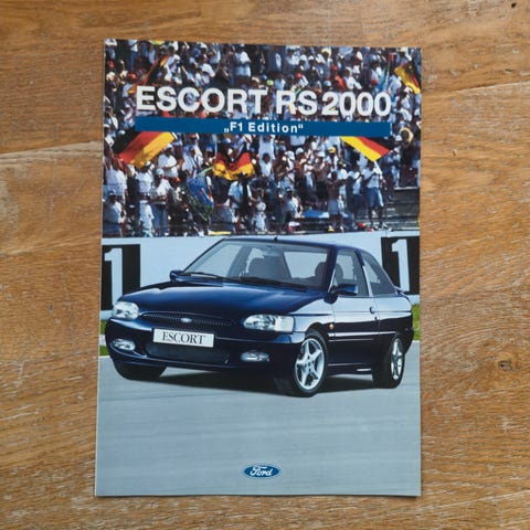 Bilbrosjyre av Ford Escort 1990 modeller selges.