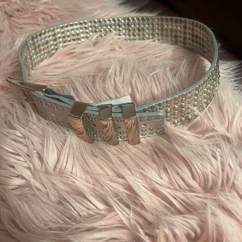 Kraftig lærbelte med nagler i tre forskjellige sølv fargenyanser.
