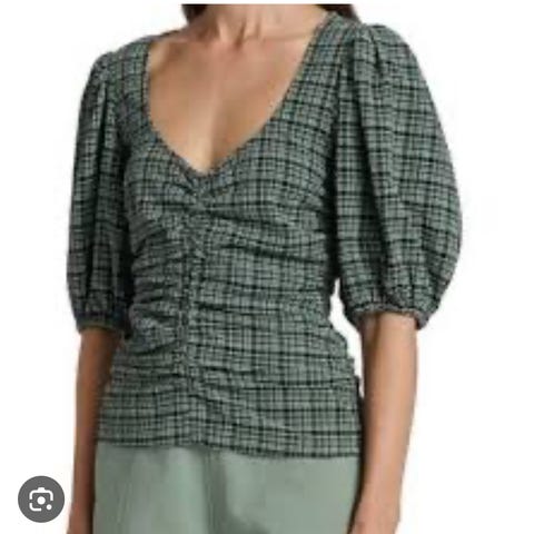 Flott bluse fra Ganni i leopard, som knapt er brukt! Denne er en str. 40 på lappen, og kan passe både str. M og L.