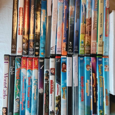 Disney og Pixar klassiske filmer, noen åpnet og noen fortsatt i emballasje.