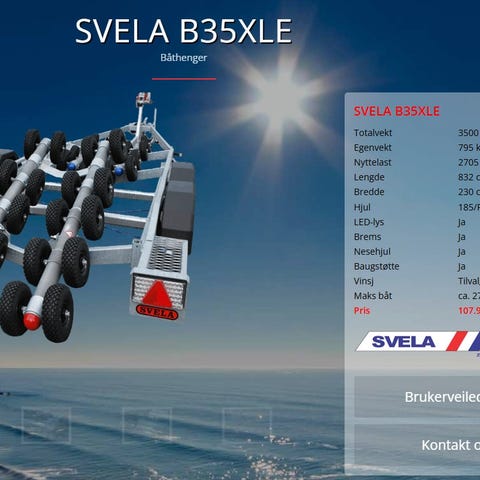 SVELA B27XE er en to-akslet båthenger for båter fra 20 til 23 fot. Med denne båthengeren gjør du transport, sjøsetting og opptak av båten din til en enkel operasjon. Dette takket være SVELAS patenterte rullesystem med luftfylte gummihjul Equalizing Roll On System . Den bakre vuggen med de luftfylte gummihjulene vippes automatisk ned når båten skal sjøsettes eller vinsjes inn. Dette gir enklere, sikrere og mer skånsom sjøsetting og transport av båten din. SVELA båthengere er meget solid bygget i vedlikeholdsfritt, varmgalvanisert stål for lang levetid.