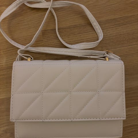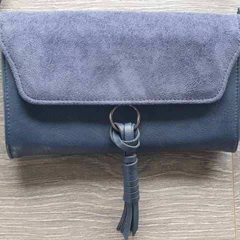 En veske i nydelig varm orangefarget kunstlær. Avtagbar skulderrem, så vesken kan brukes både som clutch eller skulderveske. Et rom med glidelås innvendig i vesken. B: 25 cm, H: 14 cm. Fremstår som ny, brukt en gang.