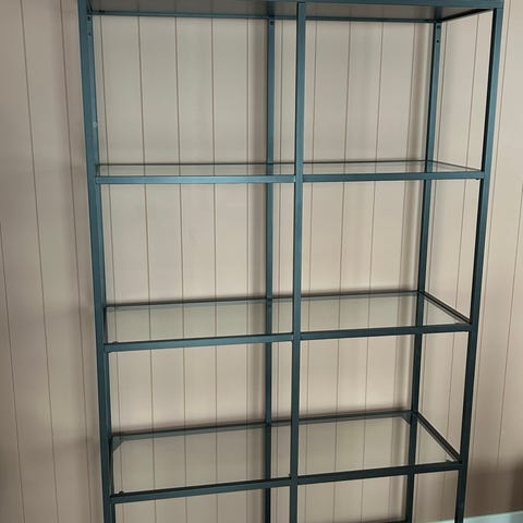 Hel og fin brunsvart/glass hylle fra ikea selges.