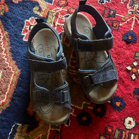 Sandaler til barn, brukt kun for 1 uke på ferie. Elastisk såle, støtter naturel utvikling av fot. Innvendig dimensjon på skoens innleggssåle 15,3 cm.