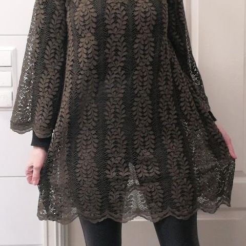 (Fin lengde men altfor trang, har glidelåsen åpen på alle bildene = preferanser). Målebåndet: Armpit to pit 45cm. Nakke til hem ca 85cm.