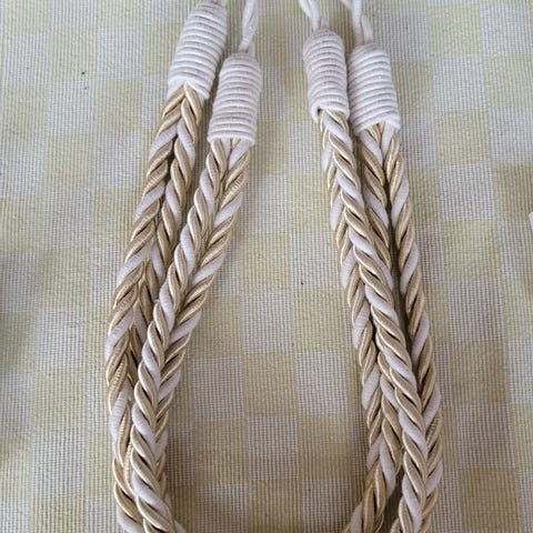 4 stk. Håndlagede gardinsnorer i hvit.