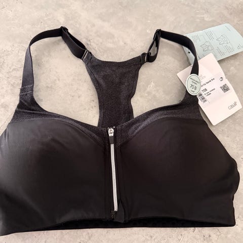 Ny Adidas by Stella McCartney sports BH, str. M/75C. Sports-bhen er grå og har justerbare stropper med lukking bak. Den er laget for å gi støtte under trening og har ventilasjonshull for bedre pusteevne.