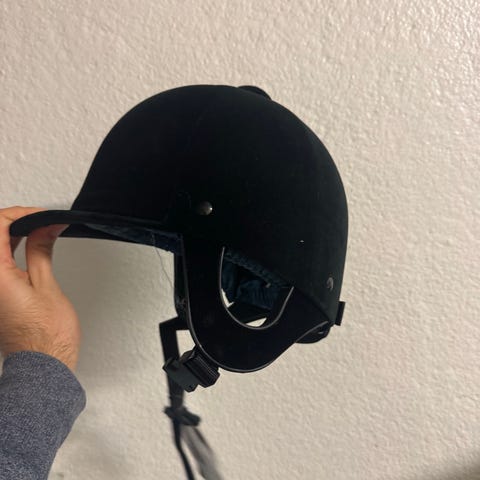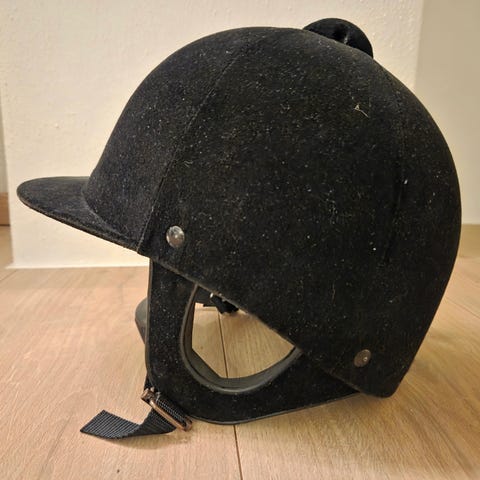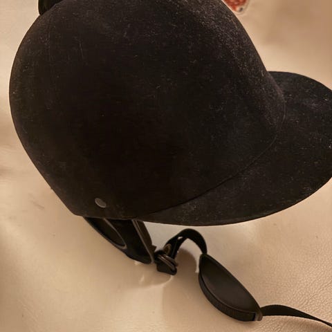 Caparello Riding Cap i svart farge, størrelse 50 cm. Hjelmen har en klassisk design med bånd bak for justering. Egnet for ridning og gir beskyttelse ved hode.