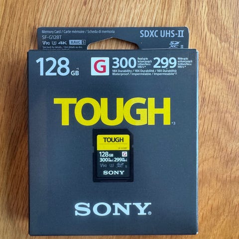Mere info: https://www.foto.no/sony/114295/sony-sf-g-tough-series-sdxc-128gb-uhs-ii-r300-w299-v90