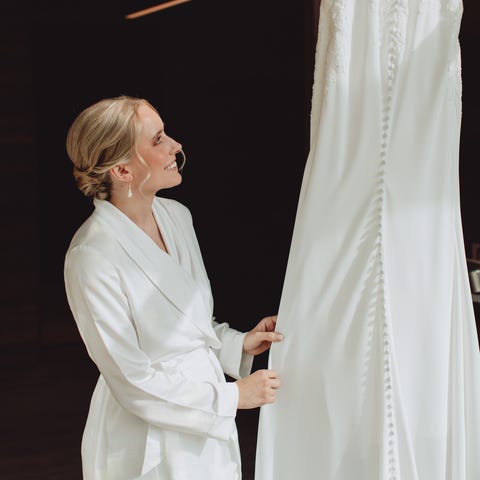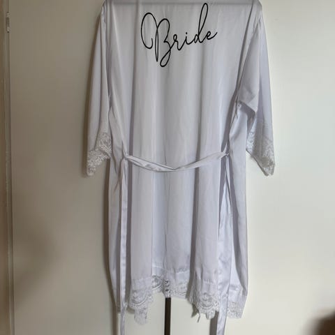Morgenkåpe/kimono med lange armer og «Bride» brodert på ryggen.
