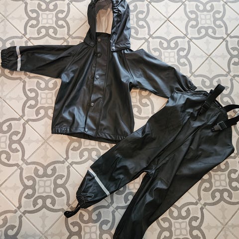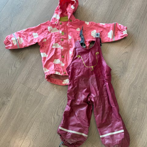 Selger svært lite brukt Bamse regnjakke og Kids World regnbukse uten synlig slitasje.