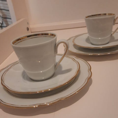 Nydelige kaffekopper fra Rosenthal Sanssouci med gullkant.