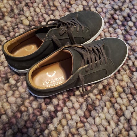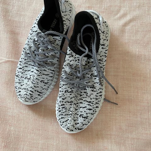 Knapt brukte joggesko kjøpt i USA, str 6,5, men opplevd som små i størrelsen. Tror de passer til str 37/38, men jeg har operert foten så det er litt vanskelig å vurdere størrelsen.