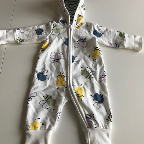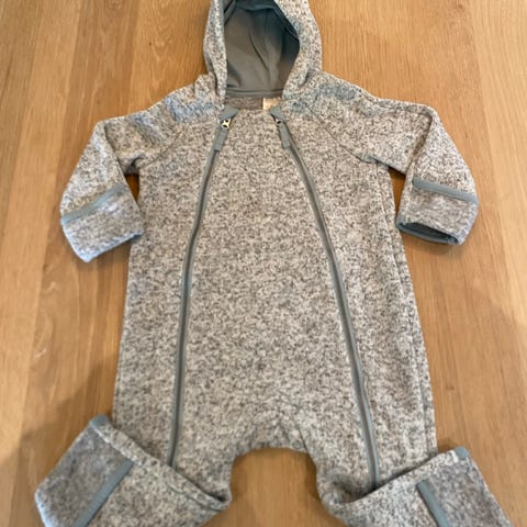 Selger en søt grå heldress i str 56 fra Polarn O. Pyret som er lite brukt. Dressen har kattemønster i stoffet og ører på hetten, se bildene. Den er kun vasket med parfymefri såpe.