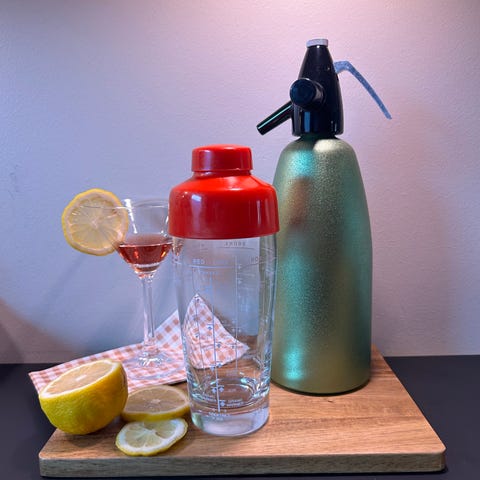 Drinkemixer /blender med mulighet for å sette i batteri. Og superfin grønn soda maker, Sparklets Syphon, til bruk med patron. Begge ubrukte og i original emballasje. Selges slik de er.