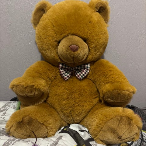 Bamse kosedyr i stor størrelse, brun farge, laget av mykt materiale. Passer for barn som et lekent og trøstende leketøy.