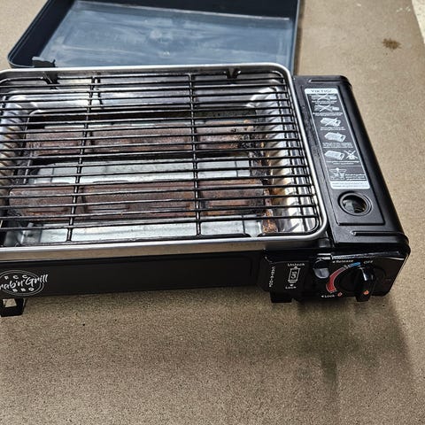 Lite brukt, små gassflasker kobles på, grei på tur i båt, fjell ol