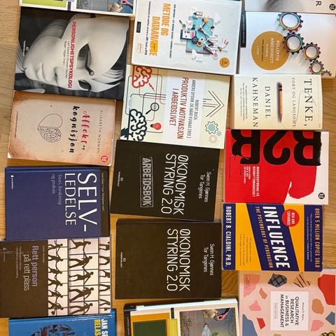 Blandet samling av lærebøker innen økonomi og administrasjon