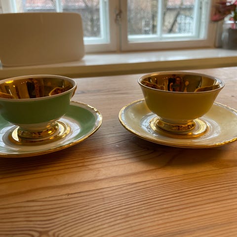 Burgunder/gullfarget. De tar 0,5 dl.