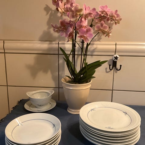 Har 8 flate middagstallerkener og 6 dype tallerkener i samme mønster kr70 pr stk