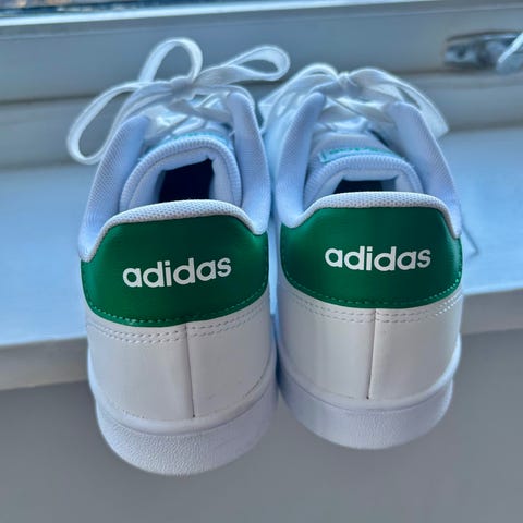 Adidas sneakers i størrelse 39,3. I god stand, men ikke kritthvit i det hvite tekstilstoffet lengre. Minimal slitasje.