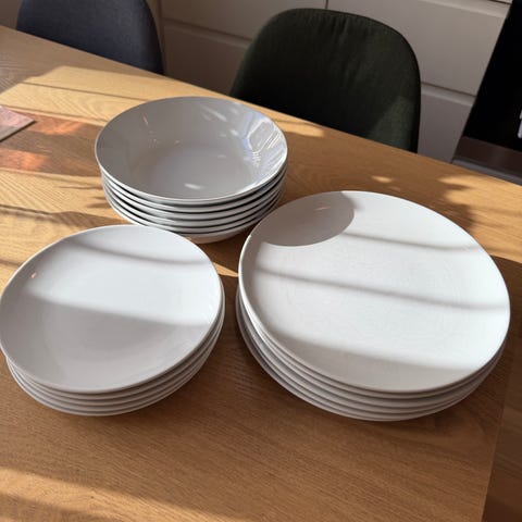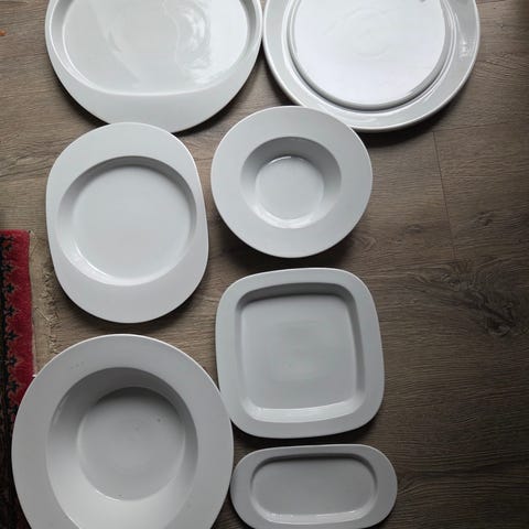 Servise 19 deler. Middagstallerken, asjetter og skåler selges samlet