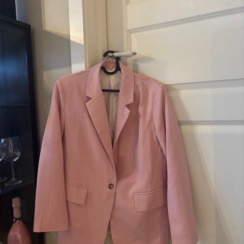 Rose farge, designet for kvinner. Strørrelse 40. Materialet har et gjennombrutt mønster med hull, som gir en luftig og lett struktur. Passer til bruk som et lett plagg over andre klær.