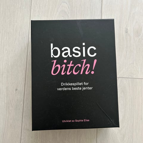 Basic Bitch drikkespill er et kortspill designet for voksne, anbefalt for aldersgruppen 18 år og oppover. Spillet inneholder ulike kort med spørsmål og oppgaver, og er ment for sosial bruk blant venner. Kortene har forskjellige farger og kategorier, og spillet leveres i en eske med instruksjoner.