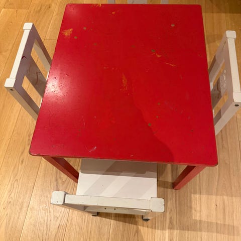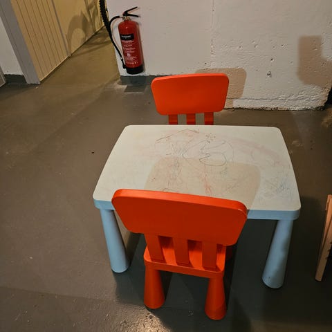 Bord med oppbevaringsboks og 2 stoler