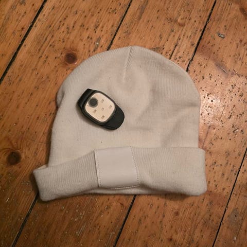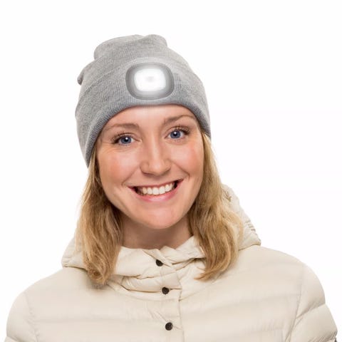 Lue med innebygd og oppladbar LED-lykt. Lykten har batteritid på opptil fire timer og kan lyse i tre forskjellige styrker (maks. 120 lm). Lykten lades direkte via USB og kan enkelt tas ut når luen skal vaskes. Universal størrelse