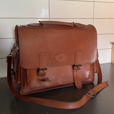 Tilstanden er brukt med synlige merker/slitasje, men læret er fortsatt solid og kan fint brukes i mange år til. Perfekt for deg som liker ekte vintage med sjel.