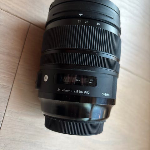 Sigma 24-70mm F2.8 DG DN kameraobjektiv med zoomområde 24-70mm og konstant blenderåpning på F2.8. Objektivet er designet for speilløse kameraer og har en solid konstruksjon. Passer for fotografer som trenger et allsidig zoomobjektiv med høy lysstyrke.