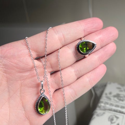 #peridot #håndlaget #unikt #smykke #krystallkraft #magisk.