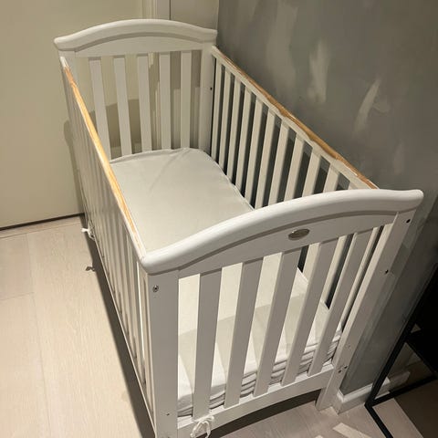 Kjøpt ny av oss fra Jollyroom for to år siden. Pent brukt, men med bitemerker og selges derfor billig. Ny pris er 1400 kr: https://www.jollyroom.no/barnerommet/barnesenger-tilbehor/sprinkelsenger/jly-dream-sprinkelseng-60x120-hvit?gad_source=1&gad_campaignid=17336516760