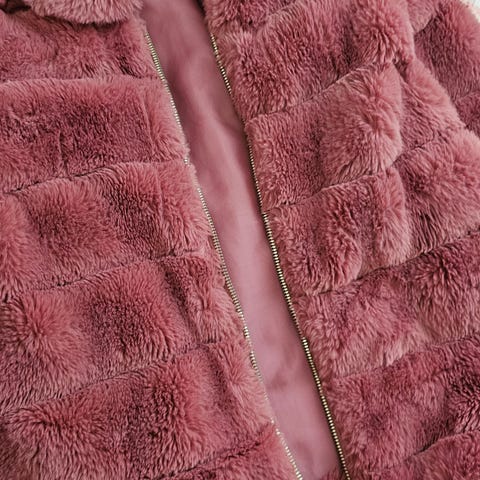 Rosa pelsjakke i fuskepels fra Lindex i størrelse 158.