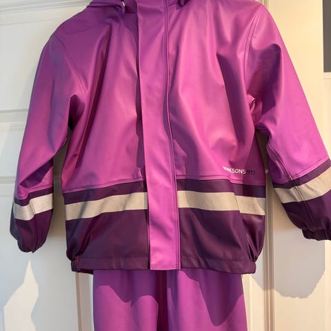 Veldig pent brukt, ingen slitasje. Supert regnsett som holder vannet ute! Selges grunnet overgang til ny størrelse.