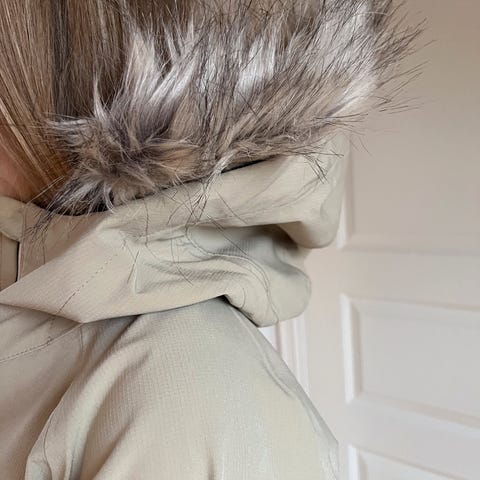 Fin detalj med knepping innenfor glidelåsen i halsen, stor brystlomme med glidelås og borrelås, samt glidelås på begge sider for enkel av- og påkledning, samt lufting ved behov.