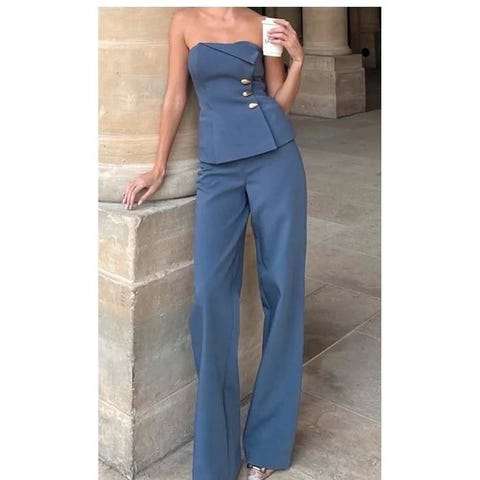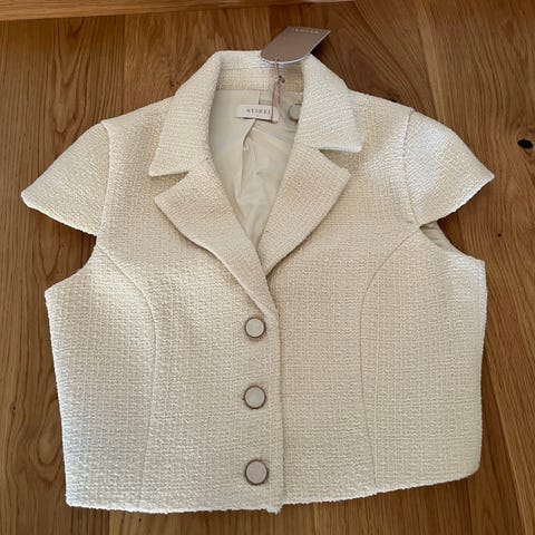 Meshki Lennox strapless long line button top dark blue, i denim stoff. Str S. Aldri brukt, ble for liten for meg. Nypris ca 1000kr inkl frakt og toll. Bilder fra meshki sin nettside