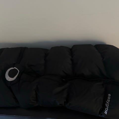 Vinterpose til barnevogn. Med åpninger for feste av belte.